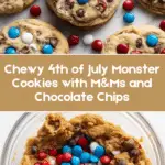 Celebrate the 4th of July with these delightful Monster Cookies, packed with peanut butter, oats, chocolate chips, M&M candies, and a perfect balance of chewy and crispy textures. These festive cookies are easy to make and perfect for sharing at any summer gathering.