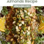 This Baked Salmon with Olives and Almonds is a vibrant, flavorful dish combining tender salmon fillets with a zesty topping of green olives, sliced almonds, fresh herbs, and lemon zest. Drizzled with honey and baked to perfection, it offers a delightful blend of sweet, savory, and nutty flavors perfect for a wholesome weeknight dinner.