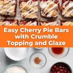 These Cherry Pie Bars combine a buttery, crumbly crust with sweet and tart cherry pie filling, topped with a golden crumble and a smooth, irresistible glaze. Perfectly baked to a bubbly finish and cut into shareable bars, they make a delightful dessert or snack.