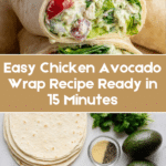 This Chicken Avocado Wrap recipe is a quick and nutritious meal perfect for lunch or a light dinner. It combines tender shredded chicken with creamy avocado, tangy Greek yogurt, and fresh herbs, all wrapped in a soft flour tortilla. Ready in just 15 minutes, this wrap offers a delicious balance of creamy and zesty flavors with a refreshing crunch from optional lettuce and tomatoes.
