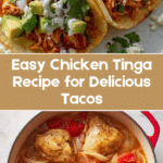 Chicken Tinga is a flavorful Mexican dish featuring tender shredded chicken simmered in a smoky, spicy tomato and chipotle adobo sauce. Served in warm tortillas and topped with fresh avocado, sour cream, pico de gallo, lime, cilantro, and cotija cheese, this recipe delivers a perfect balance of smoky heat and tangy freshness. Ready in about 45 minutes, it’s a satisfying meal ideal for taco nights or casual dinners.