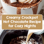 This creamy crockpot hot chocolate recipe is perfect for cozy gatherings and holiday parties. Made with rich dark chocolate and creamy milk, it’s easy to prepare and serves a crowd with decadent flavor and a velvety texture.