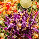 Crunchy Thai Quinoa Salad is a vibrant and healthy vegan dish featuring a colorful mix of crisp vegetables and fluffy quinoa, all tossed in a creamy, tangy almond dressing. This salad makes a perfect lunch, dinner, or meal prep option packed with fresh flavors and satisfying textures.