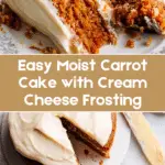 This Easy Moist Carrot Cake features grated carrots and warm spices, baked to perfection with a soft, tender crumb. It is topped with a fluffy, creamy full-fat cream cheese frosting that adds a luscious finish, making it perfect for celebrations or any cozy dessert craving.