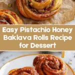 This Easy Pistachio Honey Baklava Rolls Recipe is a shining example of how simple ingredients can come together to create something truly spectacular. The cozy cinnamon, crunchy nuts, buttery pastry, and that unforgettable honey drizzle combine to make each bite feel like a special occasion. I can’t wait for you to try this recipe and see how easy it is to bring a touch of sweet magic into your kitchen. Happy baking!