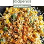 This Elote Dip Recipe offers a gentle heat from the jalapenos and chili powder. If you want it milder, reduce the jalapeno amount or omit the chili powder garnish.