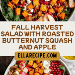 This Fall Harvest Salad with Butternut Squash and Apple is a vibrant and nutritious dish perfect for autumn and winter. Featuring tender roasted butternut squash, crisp apple pieces, sweet pomegranate seeds, and crunchy toasted pepitas, all tossed with baby kale and a tangy apple cider vinaigrette. It’s wholesome, colorful, and packed with flavor, making it an ideal vegetarian salad for any occasion.