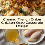 This French Onion Chicken Orzo Casserole Recipe is one of those cozy, crowd-pleasing dishes that brings people together around the table. Its creamy cheesy goodness combined with savory caramelized onions creates a meal that’s comfort in every bite. I hope you give this recipe a try—you might just find it becomes one of your quick weeknight favorites or a go-to for casual dinner parties!