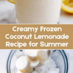 Refreshing and frosty Frozen Coconut Lemonade blending tart lemon juice with creamy coconut milk and sweet simple syrup, perfect for a quick tropical treat on a hot day.