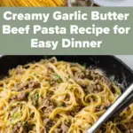 Garlic Butter Beef Pasta is a creamy, savory dish combining ground beef, fragrant garlic, and tender pasta cooked in a rich butter and cream sauce. This one-pan recipe is easy and comforting, perfect for a satisfying weeknight dinner for four.