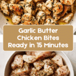 Quick and flavorful Garlic Butter Chicken Bites made by pan-searing bite-sized pieces of chicken in a rich garlic butter sauce. This family-friendly recipe is ready in just 15 minutes, making it perfect for busy weeknights or meal prep.