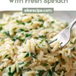 Once the orzo reaches the perfect texture, remove your pan from the heat. Now comes the best part: stir in the freshly grated Parmesan cheese, letting it melt and create a creamy coating, and fold in the chopped fresh spinach. The warmth of the orzo wilts the spinach just enough to keep its vibrant color and fresh flavor alive, giving the dish brightness and balance.