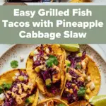 These Grilled Fish Tacos with Pineapple Cabbage Slaw are a vibrant and flavorful meal perfect for a quick and healthy weeknight dinner. Tender white fish seasoned and grilled to perfection pairs beautifully with a refreshing pineapple slaw and optional chipotle aioli for a delightful balance of smoky, tangy, and sweet flavors wrapped in warm corn tortillas.