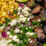 For a fun twist, serve this recipe family-style by passing around bowls filled with steak, rice, and toppings separately. Let everyone customize their own bowl—this makes the meal interactive and is perfect for casual gatherings. You could also serve the street corn salad as a side dish for a more traditional presentation.