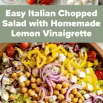 A vibrant and easy Italian Chopped Salad featuring crisp iceberg lettuce, peppery radicchio, creamy cheeses, and tangy lemon vinaigrette. Perfect as a light meal or a refreshing side dish alongside pizza, pasta, or grilled foods.
