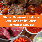 This Italian Pot Roast (Stracotto) is a rich and flavorful slow-braised beef dish cooked in a savory tomato sauce with aromatic herbs and vegetables. The beef is seared to lock in juices, then simmered slowly to tender perfection, delivering a comforting meal perfect for any occasion.