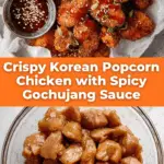 Korean Popcorn Chicken (Dakgangjeong) features bite-sized chicken nuggets marinated in a flavorful blend of garlic, soy sauce, and mirin, coated in a crispy rice flour and gochugaru crust, then fried until golden and crunchy. This versatile dish can be served tossed in a spicy, sweet, and sticky gochujang sauce or with the sauce on the side, making it the perfect snack or appetizer for parties, game day, or casual gatherings.