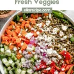 - Add Lentils: Once the lentils are cooked and drained, add them to the assembled vegetables in each bowl or to the large salad bowl and gently toss to combine.