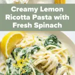 This Lemon Ricotta Pasta with Spinach is a quick and creamy Italian-inspired dish perfect for a light and flavorful meal. Combining tangy lemon, creamy ricotta, fresh spinach, and aromatic garlic with pasta, this recipe offers a delicious balance of zest and comfort in just 13 minutes.
