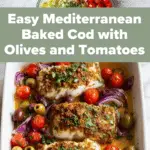 Mediterranean Baked Cod is a flavorful and healthy dish featuring tender cod fillets seasoned with lemon, paprika, and herbs, topped with a vibrant mixture of cherry tomatoes, kalamata and green olives, red onion, and garlic, all baked to perfection. This quick and easy recipe is perfect for a nutritious weeknight dinner packed with Mediterranean flavors.