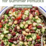 Since this salad contains fresh vegetables like cucumber and parsley, freezing is not recommended as it may compromise the texture upon thawing. The beans themselves freeze well but the fresh ingredients will turn watery and mushy after freezing.