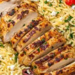 Slice the chicken breasts into elegant strips and lay them on top of the warm orzo mixture. Sprinkle with crumbled feta cheese for a creamy, salty finish that perfectly balances the tangy and savory elements of the dish. This is where your Mediterranean Chicken and Orzo Recipe really shines—simple ingredients transformed into something spectacular.