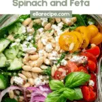 This salad is best enjoyed fresh and does not freeze well due to the delicate vegetables and fresh herbs. Freezing may compromise the texture of the spinach, cucumbers, and tomatoes, so it’s better to make just what you’ll eat within a couple of days.