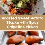 Delicious Roasted Sweet Potato Stacks with a spicy chipotle sauce, seasoned ground chicken, and fresh toppings like avocado and cilantro. This flavorful recipe combines caramelized roasted sweet potatoes with a smoky and tangy sauce for a perfect savory meal that’s both nutritious and satisfying.