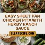 This Mediterranean-inspired Sheet Pan Chicken Pita with Herby Ranch is a quick and flavorful dinner option. Thinly sliced chicken breasts are marinated with aromatic spices, roasted to juicy perfection on a sheet pan, and stuffed into warm pita pockets with fresh lettuce, cucumber, and a creamy homemade herby ranch sauce. Ready in just 30 minutes, this recipe brings restaurant-quality flavors right to your table, perfect for a satisfying lunch or dinner.