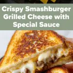 A decadent Smashburger Grilled Cheese featuring juicy smashed beef patties topped with American and Havarti cheeses, caramelized onions, and tangy pickles, all sandwiched between buttery toasted hearty white bread. Enhanced with a flavorful special Smashburger sauce, this recipe is perfect for a deliciously indulgent meal.