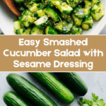 A refreshing and easy-to-make Smashed Cucumber Salad combining crispy cucumbers with a flavorful dressing of rice vinegar, toasted sesame oil, and aromatic ginger and garlic pastes, garnished with cilantro, green onions, and sesame seeds. This light, crisp salad is perfect as a side dish or a healthy snack, ready in just 15 minutes.