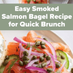 This Smoked Salmon Bagel recipe is a quick and delicious brunch option featuring toasted bagels topped with a creamy lemon-dill cream cheese spread, thinly sliced smoked salmon, fresh cucumbers, capers, and red onions. The blend of fresh flavors and textures makes every bite satisfying and flavorful.