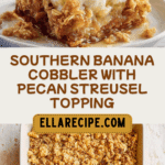 Aunt Bessie’s Southern Banana Cobbler is a warm, gooey dessert featuring caramelized ripe bananas topped with a tender cobbler batter and a buttery pecan streusel. This comforting, classic Southern recipe blends sweet banana flavor with a crisp, crumbly topping, making it a family-favorite treat perfect for cozy gatherings.