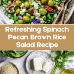 A vibrant and healthy Spinach Pecan Brown Rice Salad featuring tender brown rice, toasted pecans, fresh vegetables, and a zesty lemon dressing. Perfect as a nutritious side or light meal, this salad blends chewy rice with crunchy nuts, tangy feta, and fresh greens for a satisfying texture and flavor combination.
