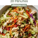 Finish your Thai Peanut Chicken Crunch Slaw Salad Recipe by sprinkling the chopped peanuts over the top. This final touch adds a delightful nutty crunch and deepens the peanut notes for an irresistible texture contrast that makes every bite exciting.