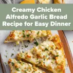 - Serve: Remove from oven, slice the garlic bread into 2-3 inch pieces, and serve warm. Enjoy this comforting and flavorful Chicken Alfredo Garlic Bread!