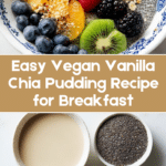 This Vanilla Chia Pudding is a simple, easy-to-make vegan overnight recipe that combines chia seeds with almond milk and vanilla for a creamy, nutritious breakfast or snack. The pudding sets after a few hours in the fridge and can be sweetened with maple syrup or sugar to taste. It’s perfect for a healthy, make-ahead treat topped with fresh fruit or granola.